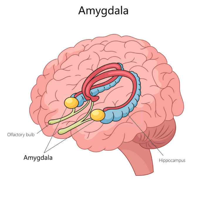 The amygdala is a pair of small almond-shaped structures within the temporal lobe of the brain. It plays a critical role in processing emotions, particularly fear and aggression, and forming emotional memories. The amygdala is a key component of the limbic system, which is involved in motivation, emotion, learning, and memory.